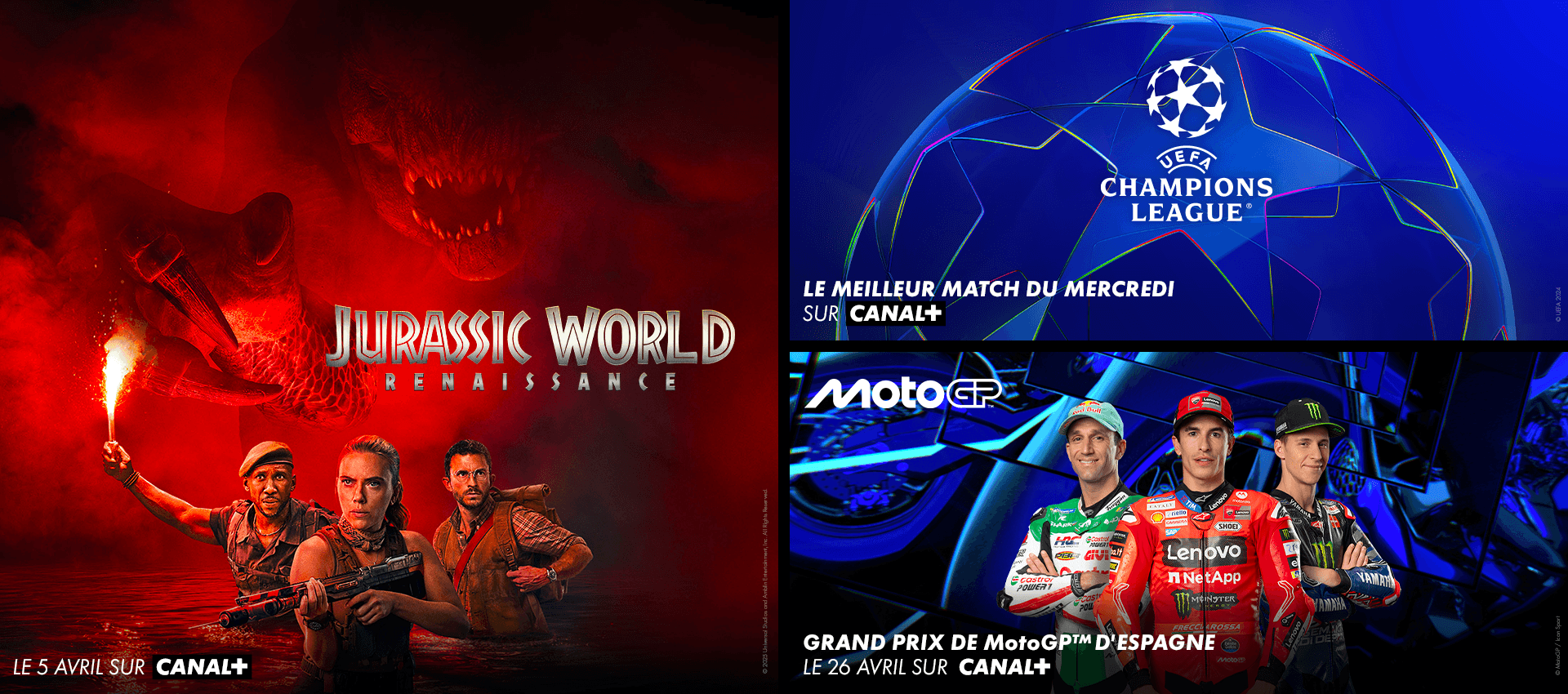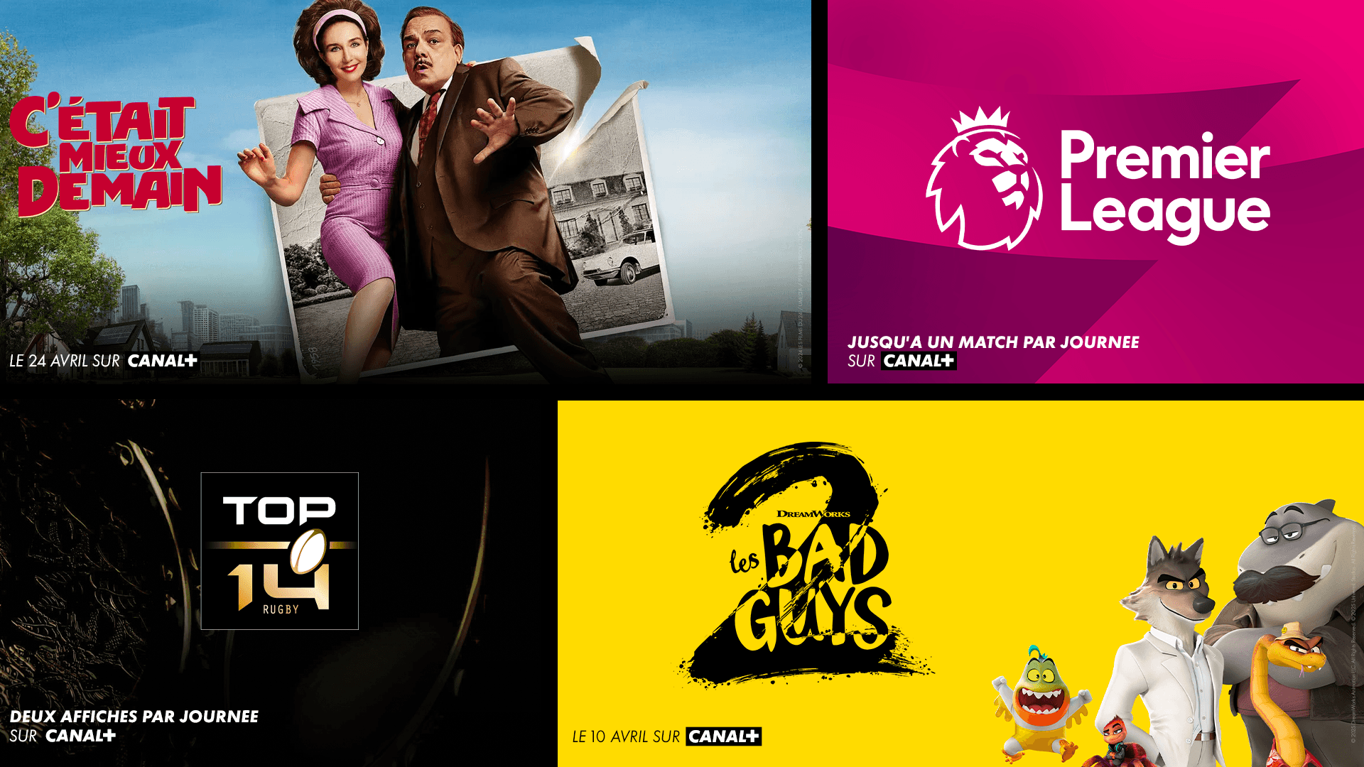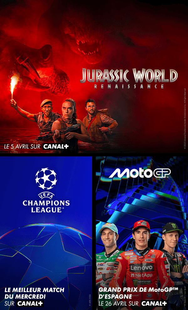 Les dernières sorties cinéma et séries, les grands évènements sportifs comme le top match du mercredi de l’UEFA Champions League, deux matchs par journée de TOP 14, jusqu’à 1 match par journée de Premier League, tous les Grands Prix™ de Formule 1® et de Moto GP™ (hors essais et qualifications), et les émissions et programmes du moment de la chaine CANAL+. Disponibles en direct et en replay courte durée, avec un peu de pub en plus.