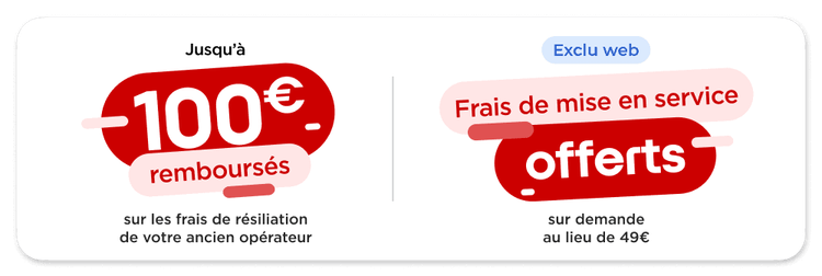 Si vous utilisez actuellement l'ADSL, c'est le moment de passer chez Free. Profitez de la Fibre N°1 sur les débits en 2024 selon Zone ADSL&Fibre¹. Bénéficiez jusqu'à 100€ remboursés² sur demande sur les frais de résiliation de votre ancien opérateur et des frais de mise en service de 49€ remboursés³ sur demande avec conservation de votre numéro de téléphone.